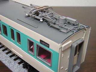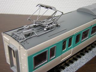 | ・モハ112-5519 霜取用にパンタグラフが増設されている為、TOMIXのPS16を追加 実装しています。 なおこの車両もモハ113同様、窓配置を変更しています。 |