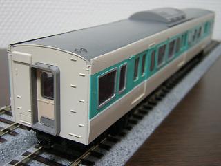 | ・モハ113-5519 実車の種車が700番台改造車ゆえ、2000番台と窓配置が異なります。 よって、一旦窓を埋めて開けなおしています。 |