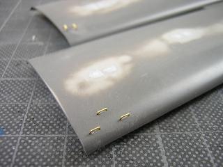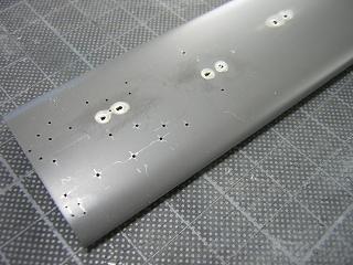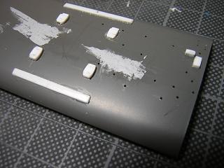 | 側面加工(モハ113-5719) 追加した雨樋部と、側板が面一になるようにパテを盛って 整形していきます。 >この進捗で更新か?と言われそうですが(^^;) パテ盛り→整形と中々進まない作業工程です。 (言い訳^^;;;) '06-6/11 |