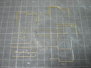 | 前面手摺作成(クハ111-7706/7756) 前面手摺はΦ0.3mmの真鍮線で作り直します。 現物にあわせて曲げた状態。 以降下地処理にプライマーを吹いておきます。 これにて塗装編に移行(予定) '06-7-24 |