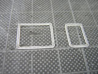 | 窓枠作成2 4両分でも約60個の量産はかなりめんどくさいです。 不揃いですし...。 真鍮エッチングで窓枠パーツみたいなものがでれば 売れると思うんですが...。 |