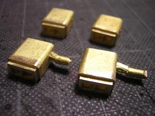 前面パーツはロストワックス製で、半田付けの前に湯口を