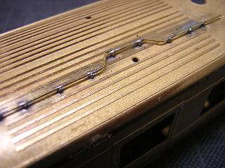 手摺を裏から半田付けした状態。
