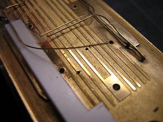 ヒューズボックスの裏側も同様に、パーツからの線を真鍮線に