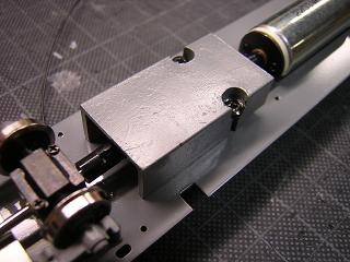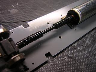 | ・床下組立 モータ仮固定。 モーター固定にはエンドウのNo.6305:モーターホルダHIセットを、 ジョイントはエンドウのNo.6501:ユニバーサルジョイントφ1.5-φ2.0を 使用しています。 共にキットには含まれておらず、別途購入が必要です。 |