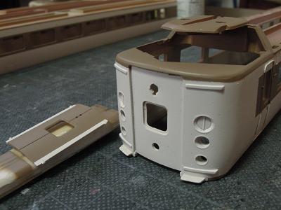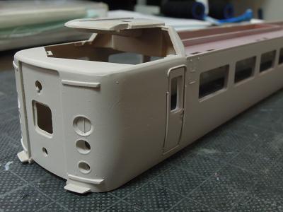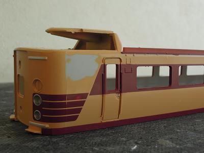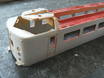 車体加工 ・貫通ドアも同様です。 連結時にドアを開いた状態を再現する為、修理パーツで 貫通ドアと特急シンボルマークを購入しています。 2012-8/5 |