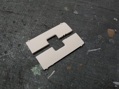 洗面所窓埋め加工 ・JR西日本車では洗面所の窓を埋められた車輌が多く在籍 しています。 今回製作対象のA46編成も、全ての車輌で洗面所窓が 埋められているため、t=1.2mmのプラ板で窓を塞ぎます。 |