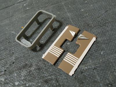 JNRマーク撤去 ・模型は国鉄仕様の為、JNRマークがモールド表現されています ので、削り落とします。 |