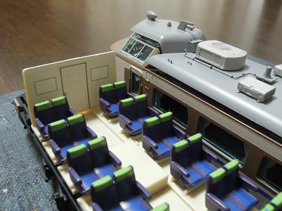 座席塗装 ・座席のブルーを塗装。 ブルーはGM22:小田急ブルーにGSIクレオスNo.67:紫を 調合しています。 |