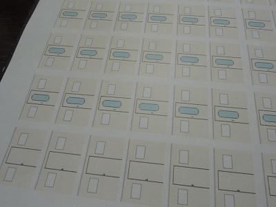 内装組立 ・車内仕切の製作 前作T44編成で使用した車内仕切用のデータ(TRCの 701Dさま製作)を用いてプリントアウト→仕切り壁に 貼付けます。 |