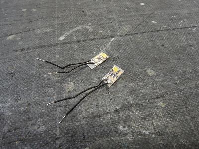内装組立 運転席ライトを製作します。 チップ白色LEDに1kΩの制限抵抗を接続しています。 |