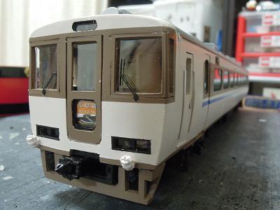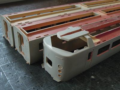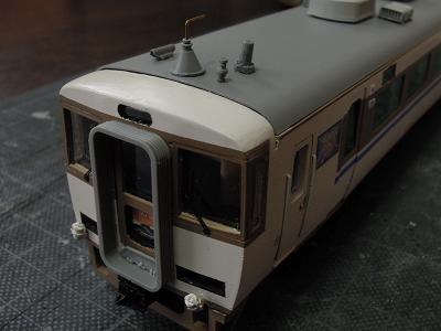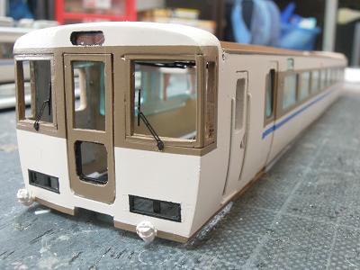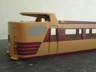 車体組立1 ・クモハはマイペースで組立て中。 愛称幕周辺に艶消し黒を色差ししています。 |