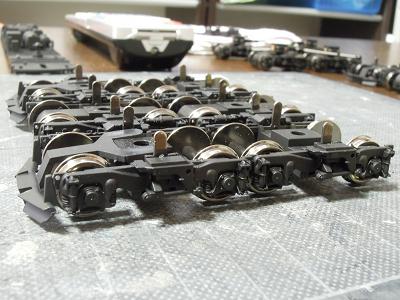 床下塗装 ・床下に関しては標準工事として台車を含め全て艶消し黒を 吹きます。 台車は一旦ばらして塗装に備えます。 なおこれらの作業はG64編成製作時に同時に行っています。 |