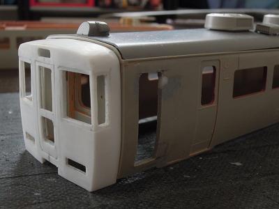 運転台ユニット設置 ・車体側は妻面をカットします。 |