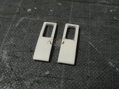 車体組立2 ・ここからはクモハ中心に。 先に塗装したワイパーとジャンパ栓を接着。 ジャンパ栓は形状は違いますが、雰囲気ということでKATOの キハ58残パーツを使用しています。 |