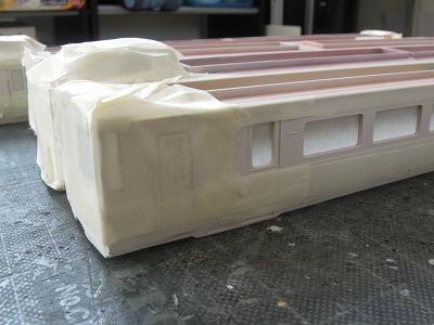 車体塗装 ・窓周り塗装に備えマスキング。 |