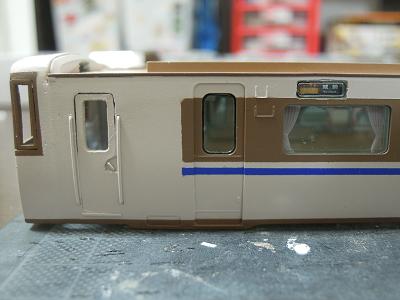 車体塗装 ・窓周りの茶色を吹付け完了。 茶色はGSIクレオスNo.22:ダークアースとGM37:白3号を 調合しています。 |