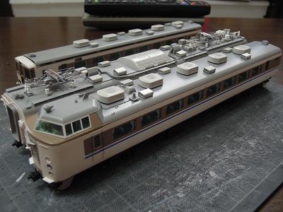 モハ484(手前)/モハ485(奥)ユニット ・こちらはM車となるモハユニット。 今回屋根加工は無く、非常に助かります。 |