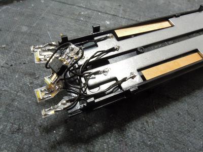 室内灯加工 ・クモハ用のみ、上部ヘッドライトと運転室内用LEDも室内灯 ユニットに接続しています。 |