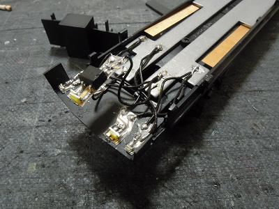 車体組立3 ・最終組立に入ります。 側面方向幕部もライトケースを実装します。 |