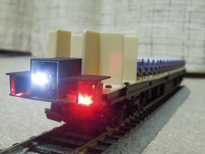 前照灯ユニット製作 ・クモハのライト類を製作します。 愛称幕とヘッドライトはチップ白色LEDを、テールライトは チップ赤色LEDを使用しています。 |
