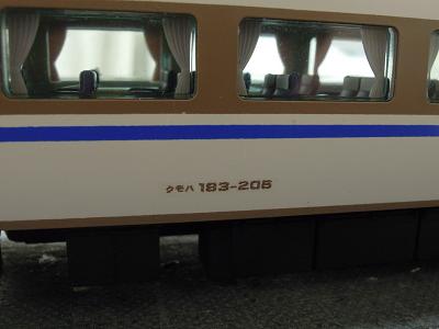 改造点 ・ベースは言うまでも無くTOMIXの485系です。 ・種車と車体加工は下記の通りです。 クハ183-710: ・種車はクハ481-300番代を使用。 ・洗面所窓の撤去、JRアンテナの設置。 ・特急シンボルマークの銀色化 モハ182-205: ・種車はモハ484。 ・側面非常口の閉鎖。 クモハ183-205: ・種車はモハ485。 ・洗面所窓の撤去と側面方向幕の位置変更。 ・側面非常口の閉鎖と一部客用窓小型化。 ・運転台新設。 |