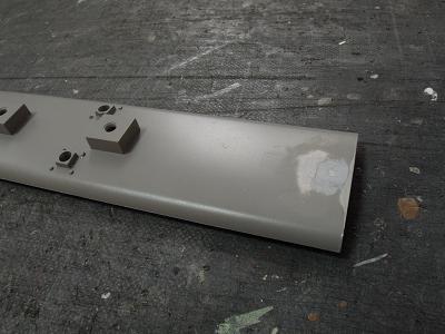 非常脱出口の閉鎖 ・JR西日本車では、洗面所窓と同様に非常用脱出口も閉鎖 された車輌が多く、C35編成も全車閉鎖されています。 よって、こちらもペーパー掛け⇒パテ埋め⇒ペーパー掛けで 表面を平滑化します。 |