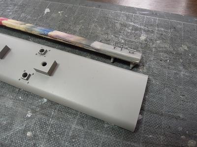 車体組立4 ・運転台側屋根の換気口を取外し、取付け用穴を一旦埋めます |