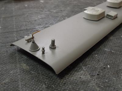 車体組立4 ・パーツ類を実装。 検電アンテナはΦ0.4mm真鍮線を曲げています。 |
