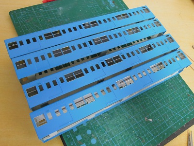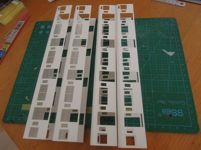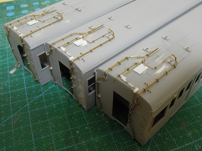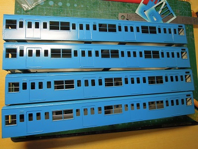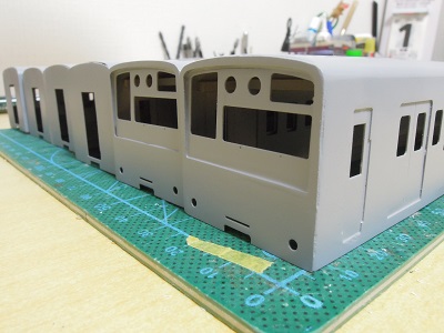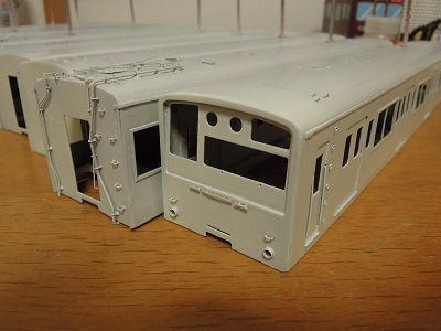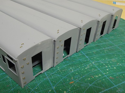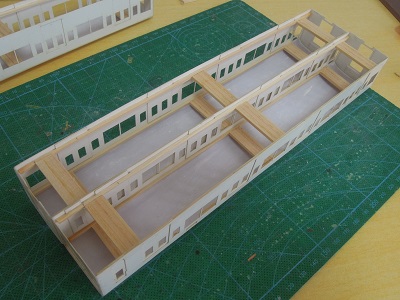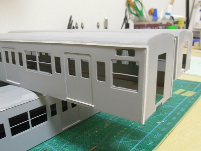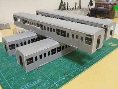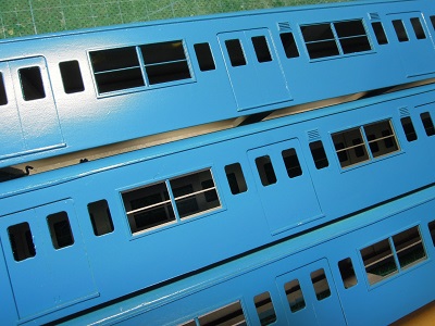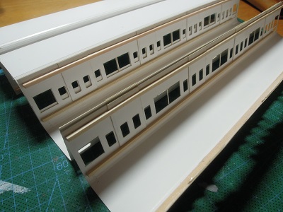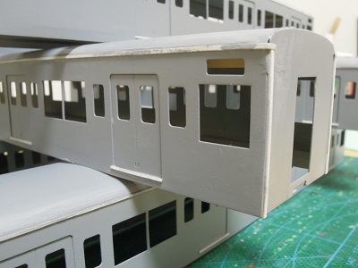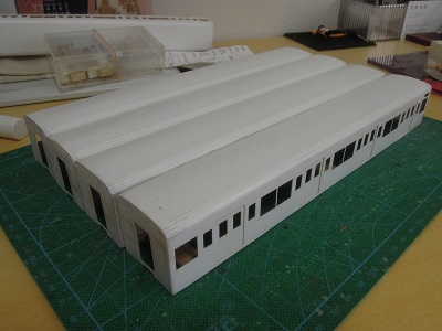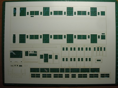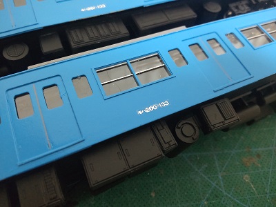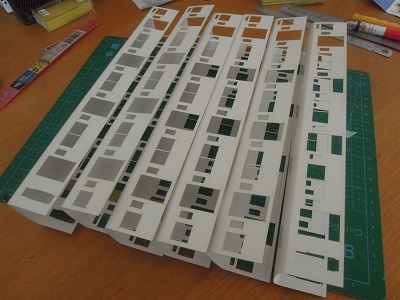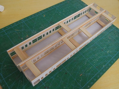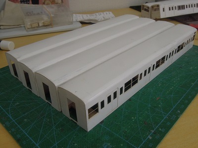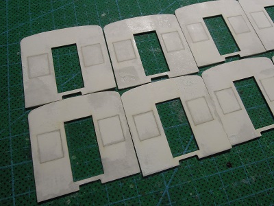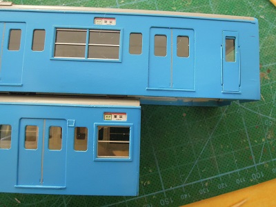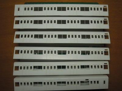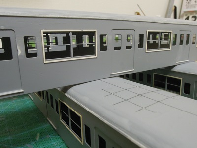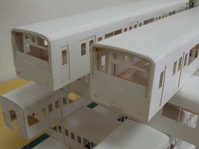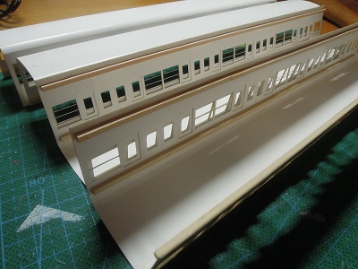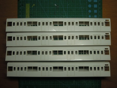 増備4両は、型紙のレイアウトの関係から、サッシを別パーツ