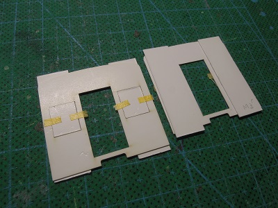 実車では妻面の窓は埋められているので、型紙の余白を