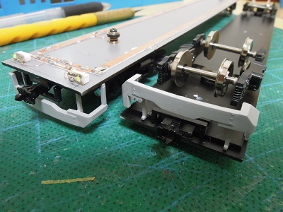 台車を実装し、カプラー類を取り付けます。