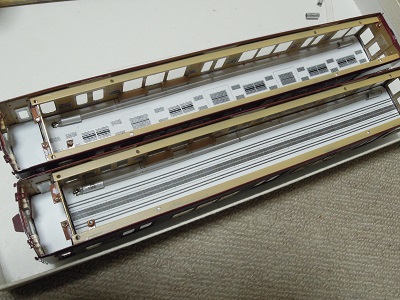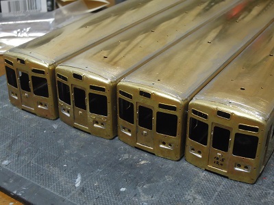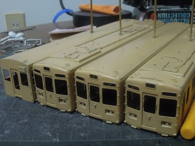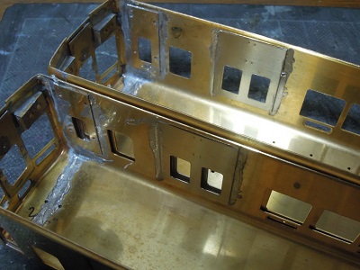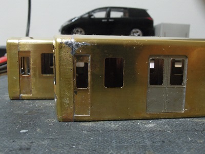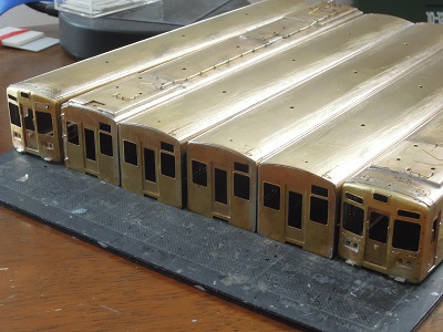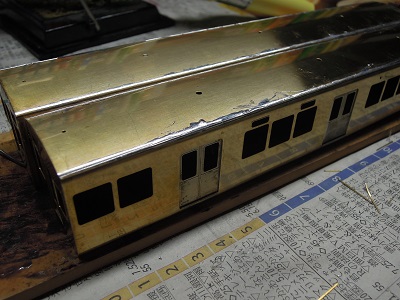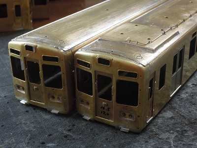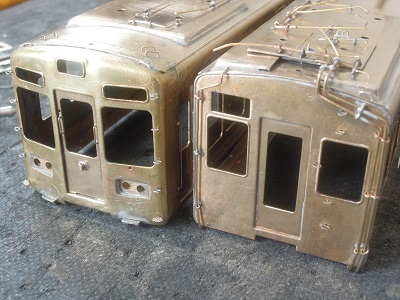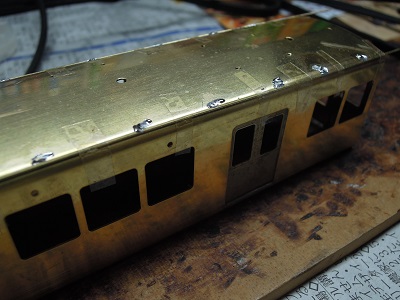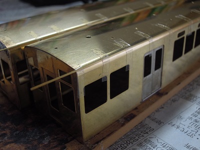 ・車体箱組(全車)(2015-8/20) 乗務員ドアや客用ドアを半田付け。 |