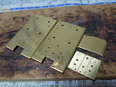 ・パンタ台組立(2015-9/10〜9/23) パンタ車のパンタ台の組立を行います。 一部の配管や配管止めは、この段階であらかじめ はんだ付けします。 まずはケガキから。 |