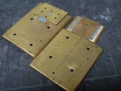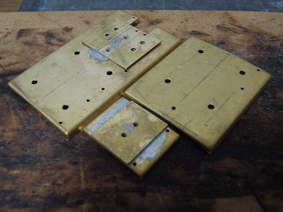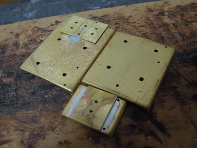 ・妻板組立(2015-8/11) 貫通ドアの半田付け完了。はみ出した半田はキサゲて おきます。 |