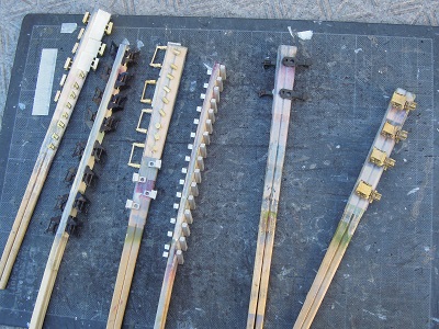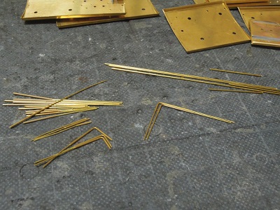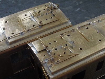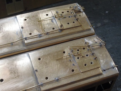 ・パンタ台組立 妻面配管も真鍮線で作成します。 |