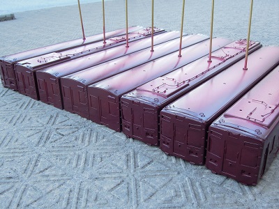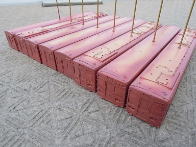 ・床下機器、屋根上機器類塗装(2015-12/9〜12/13) 屋根上塗装に合わせて、同色の床下機器や台車、屋根上 機器類も塗装します。 |