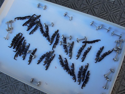 ・床下機器、屋根上機器類塗装 こちらは台車関係。 |