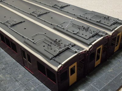 ・床下機器、屋根上機器類塗装 こちらは屋根上ヒューズボックスや、床下台車、連結器関連。 |