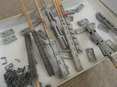 ・車体塗装(2015-10/6〜12/9) 塗装用治具として、まずは車体保持用パーツを作成。 |