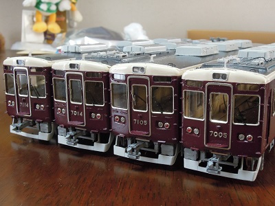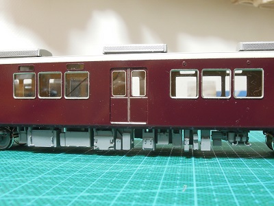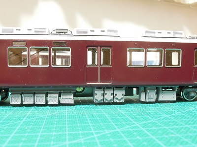 ・車体パーツ実装 台車のボルスタ類も実装して、阪急らしくなります。 |