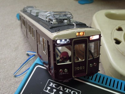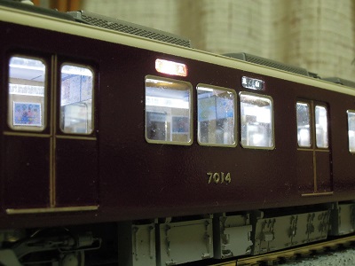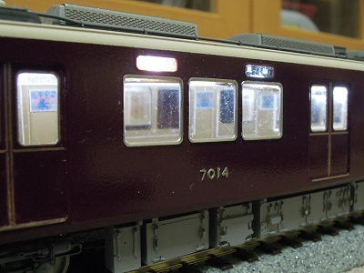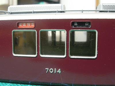 ・方向幕貼付け c#7014は「直通特急 嵐山」運用としています。 これで京都線も入ることが出来ます。 |