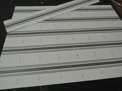 ・室内シート製作(2016-5/5〜2016-5/12) 最後に残っていた室内シート。 いつものカツミ製プラロングシートを切り出します。 |