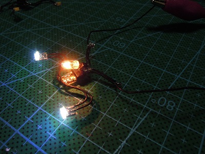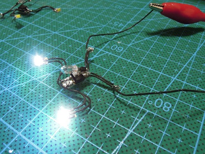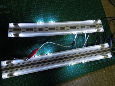・ライトユニット類組立 室内灯ユニットの試験点灯。 |