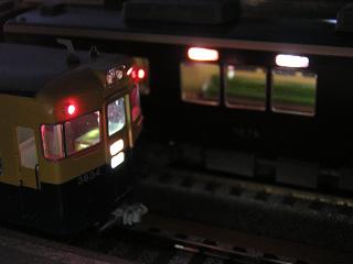 | 8002Fとの並び。 ・左が8002F用車輌。光量はほぼ同等に改善されました。 2013/4/21 |