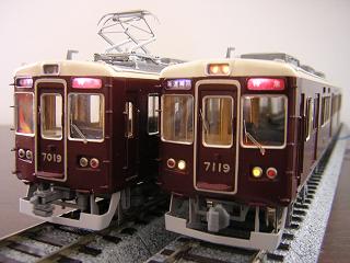 今回模型化した7019編成は、その最終型に当たるアルミ車体でスイープファン設置の8連通し編成で、主に神戸線で活躍しています。