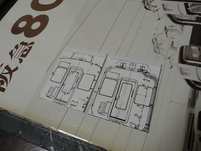 妻板組立 ・今回は妻板からスタート。 7019Fでは箱組みしてからステップ用穴を開けることに なり大変な思いをしたので、今回は先にステップ用穴を 開けることにしました。 まずはテンプレートを作成。 資料はもちろんレイルロード社の「阪急8000系」。 |