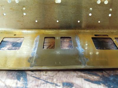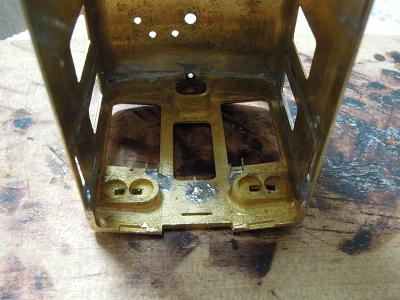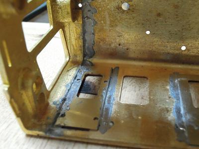 アングル取付 ・はんだを流した状態。 この段階では汚いですが、この後キサゲ処理で余分な はんだを落とします。 |