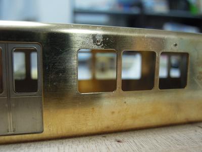 細部色差し ・妻面の窓枠も銀色に色差ししておきます。 妻面も洋白パーツで磨きだしで表現できれば作業が 楽なのですが、強度的に難しいのでしょうか? 2013-2/10 |