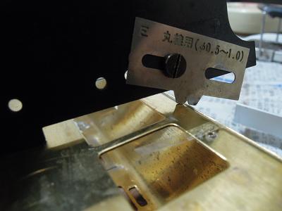 車体箱組みのキサゲ処理 ・靴ヅリ部のキサゲ処理と同時に、車体前面部と側面の 継ぎ目も平滑化処理しておきます。 2012-9/30 |
